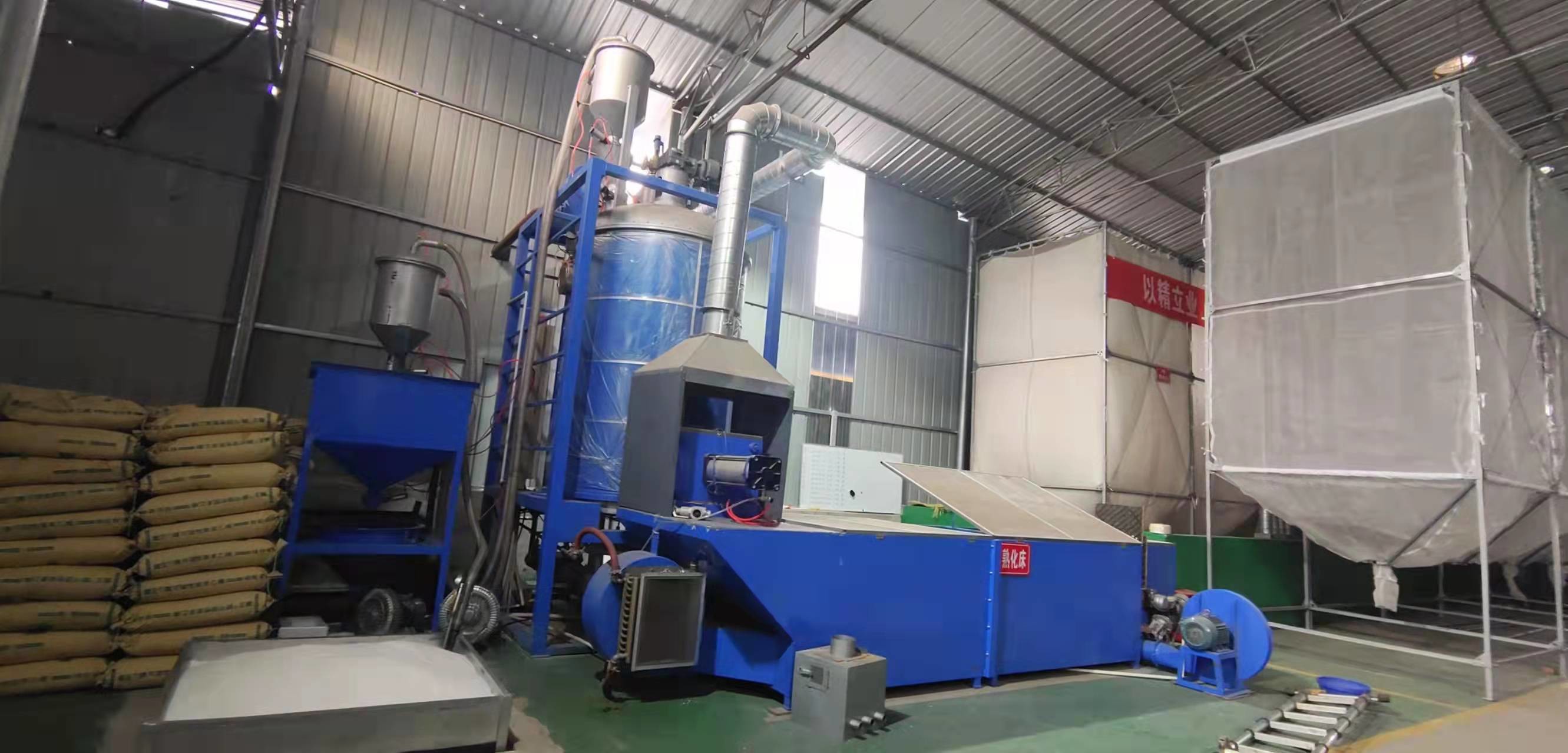 ■ 연속 전 확장 기계에는 주요 확장 기계, 나사 컨베이어, 유체화 베드 드라이어, 확장 된 물질을 실로로 전달하는 블로어 등이 포함되어 있습니다.